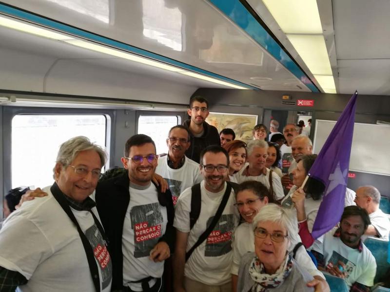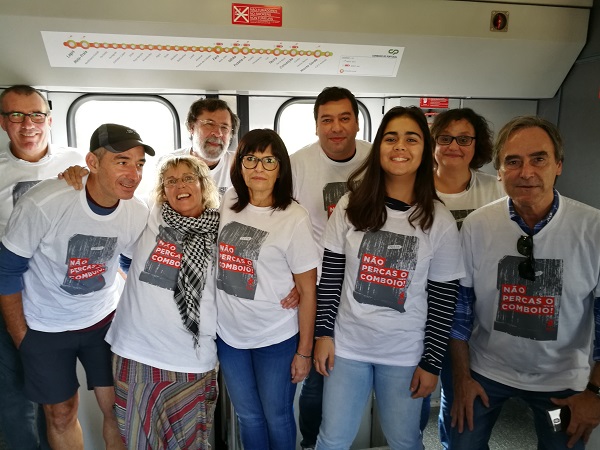 Este domingo, cerca de 150 candidatos e candidatas aos órgãos autárquicos dos concelhos de Coimbra, Figueira da Foz, Pombal, Leiria, Marinha Grande, Nazaré, Alcobaça, Caldas da Rainha, Óbidos, Peniche, Torres Vedras, Mafra, Sintra e Amadora, realizaram uma viagem de comboio conjunta até Entrecampos em defesa da linha do Oeste, exigindo a sua requalificação integral.