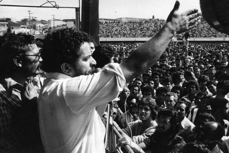 Lula sindicalista fala aos operários.