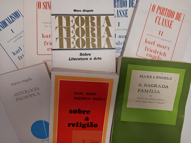 Livros de Marx e Engels. Foto de Mariana Carneiro.