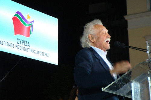 Manolis Glezos, 90 anos, é o símbolo vivo da resistência contra a ocupação nazi. A 30 de maio de 1941, foi um dos dois jovens que retiraram a enorme bandeira nazi que tremulava na Acrópole. Condenado à morte em repetidas ocasiões durante e depois da guerra civil, M. Glezos passou no total mais de onze anos na cadeia. Hoje é deputado pelo Syriza (Coligação de Esquerda Radical).