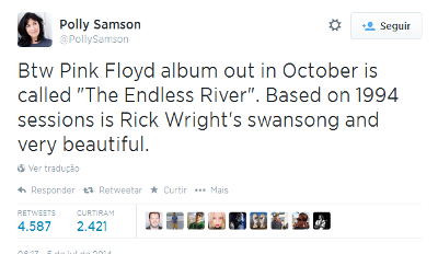Um porta-voz de David Gilmour confirmou entretanto à Rolling Stone a edição do novo álbum, "Endless River", prevista para outubro.