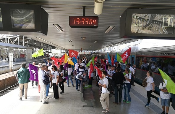 Este domingo, cerca de 150 candidatos e candidatas aos órgãos autárquicos dos concelhos de Coimbra, Figueira da Foz, Pombal, Leiria, Marinha Grande, Nazaré, Alcobaça, Caldas da Rainha, Óbidos, Peniche, Torres Vedras, Mafra, Sintra e Amadora, realizaram uma viagem de comboio conjunta até Entrecampos em defesa da linha do Oeste, exigindo a sua requalificação integral.