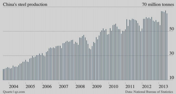 Além disso, durante o período da bolha (e em plena crise mundial), a China não soube aplicar os travões e duplicou a sua produção de aço depois da crise de 2008. Isto estimulou a procura mundial de matérias primas e ajudou a inflacionar os preços das commodities fazendo crer que a China poderia tomar o papel do comando económico mundial. Isto favoreceu os países emergentes e a bonança gerou novas bolhas que também rebentarão e provocarão uma aterragem forçada. No período já decorrido de 2014 viu-se uma forte tendência para a baixa no preço das commodities e especialmente dos minerais. O ouro, a prata e o cobre caíram mais de 30 por cento desde os seus máximos e esta tendência pode continuar. Para os países que desenvolveram os seus modelos produtivos com base nas exportações o horizonte é complexo.