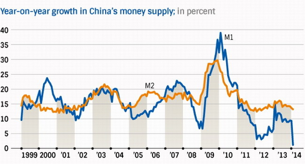 A especulação imobiliária foi impulsionada pela taxa de crescimento da oferta monetária (M1) e a sua forma mais ampla de dinheiro que é M2. Tanto M1 como M2 diminuíram a níveis não vistos nos últimos 15 anos e tudo indica que permanecerão por um longo tempo nesta zona. A China converteu-se num dos países mais endividados do mundo e a sua dívida pública supera os 200 por cento do PIB, mais de 15 biliões de dólares.