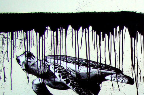 Graffitti alusivo ao derrame de petróleo da plataforma da BP. Foto tsand/Flickr
