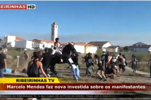 A investida do cavaleiro tauromáquico ocorreu no dia 2 de setembro de 2012 e foi relatada, entre outros meios de comunicação, pelo Esquerda.net: “Junto à praça improvisada montada próximo do parque de campismo da Torreira, cerca de 40 pessoas expressavam o seu desagrado contra a realização da tourada. Os manifestantes encontravam-se sentados no chão, de forma pacífica, quando o cavaleiro Marcelo Mendes investiu com o seu cavalo contra eles, repetindo o ataque violento uns minutos depois.”