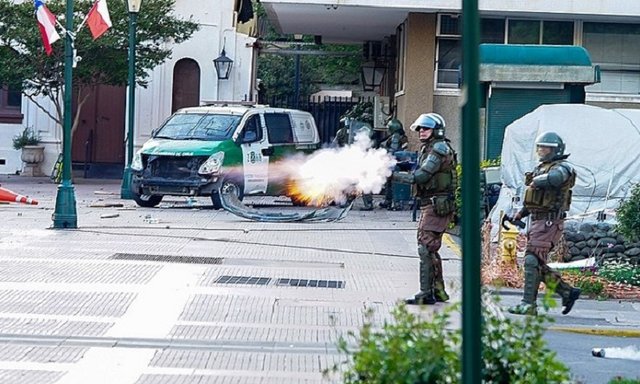 O presidente Sebastián Piñera – uma das cinco pessoas mais ricas do Chile, com fortuna feita durante a ditadura e atualmente estimada em 2,8 mil milhões de dólares, segundo a revista Forbes,2 acabou por ceder. A 19 de outubro anunciou a anulação da subida de preço dos bilhetes do metro e dos autocarros Transantiago, medida que, desde o seu anúncio a 6 de outubro, provocou um vasto movimento de protestos em todo o país. Mas esta concessão de Piñera chegou tarde: o aumento de 30 pesos foi a gota de água que fez transbordar a cólera popular, expressa no slogan “Não é por 30 pesos, é por 30 anos” («No es por 30 pesos, es por 30 años»), que mostra a exasperação do povo chileno em resultado das contra-reformas neoliberais anti-sociais levadas a cabo desde o fim da ditadura. Ultrapassado pelos acontecimentos, o presidente decide nesse mesmo dia colocar os militares nas ruas; foi o mesmo que soprar as brasas de um conflito em plena propagação. De facto, o envio do exército para as ruas da capital, onde foi declarado o estado de emergência – alargado, durante a noite, a duas outras regiões, Valparaíso (centro) e Conceptción (sul) –, agitou profundamente os ânimos num país traumatizado pela ditadura militar de Augusto Pinochet (de 1973 a 1990) – falecido em 2006 sem ter sido julgado pelos seus crimes, que fizeram mais de 3200 mortos e desaparecidos e 38.000 torturados.3