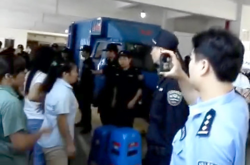 Neste vídeo gravado por telemóvel durante a ação policial de dia 13, pode ver-se algumas trabalhadoras agarradas às pernas de responsáveis pela gestão, numa tentativa de os impedir de retirarem o material.