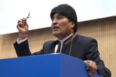 Evo Morales foi a Viena a defender a exclusão da folha de coca na lista de substâncias proibidas, mas os proibicionistas temem um "efeito dominó" e relação às outras drogas ilegalizadas nos últimos cem anos. Foto ONU - Viena