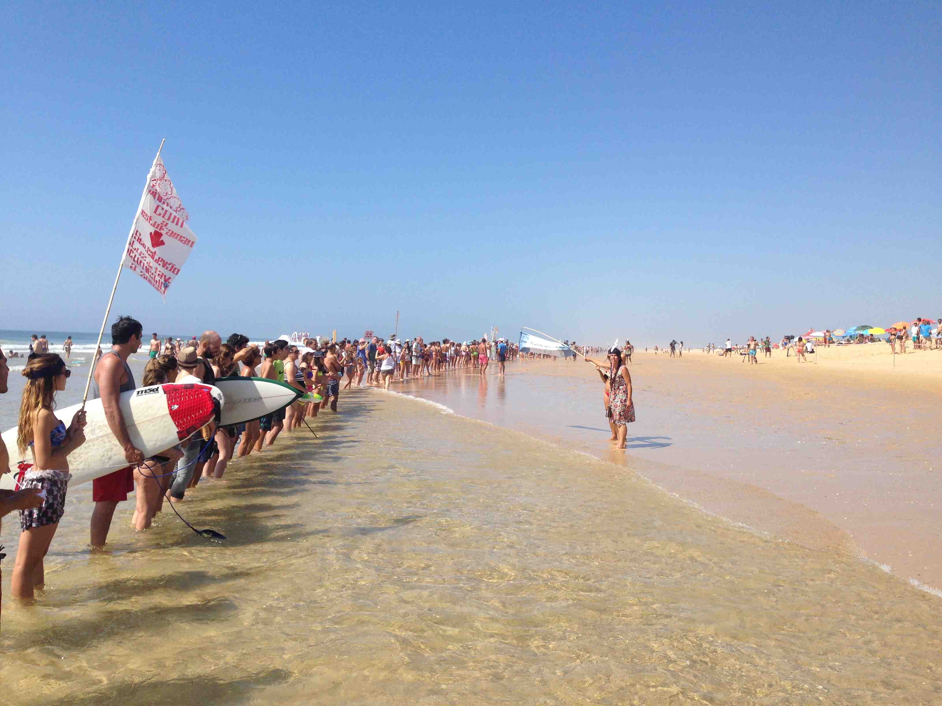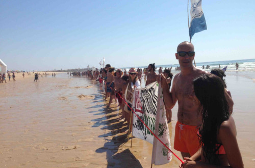 Organizado pelo movimento Tavira em Transição e pelo Acampamento Anti Fóssil, aproximadamente um milhar de pessoas fizeram este domingo de manhã um cordão humano na praia da ilha de Tavira contra a prospeção e exploração de petróleo no Algarve e em todo o território de Portugal.