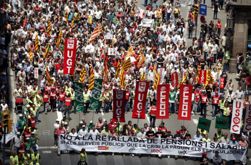 Houve já um primeiro protesto, com mais de 1500 trabalhadores, que decorreu durante a manhã, às portas do Ministério da Economia em Madrid, um dos pontos que centrará parte das contestações sindicais. Em Barcelona, um dos pontos de concentração foi a porta do hospital Vall d’Hebron, onde logo pela manhã se começaram a juntar trabalhadores, que mais tarde percorrerão o centro da cidade. Agora encontram-se já 30 mil manifestantes na rua.