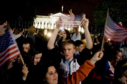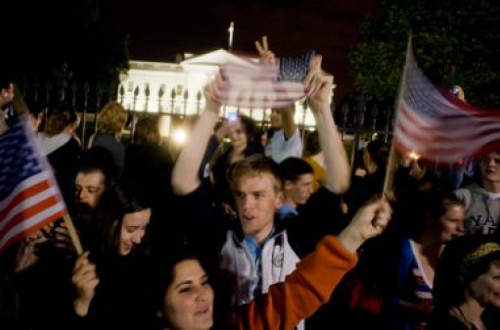 Centenas de americanos com bandeiras nacionais reuniram-se em frente à Casa Branca para comemorar a notícia.