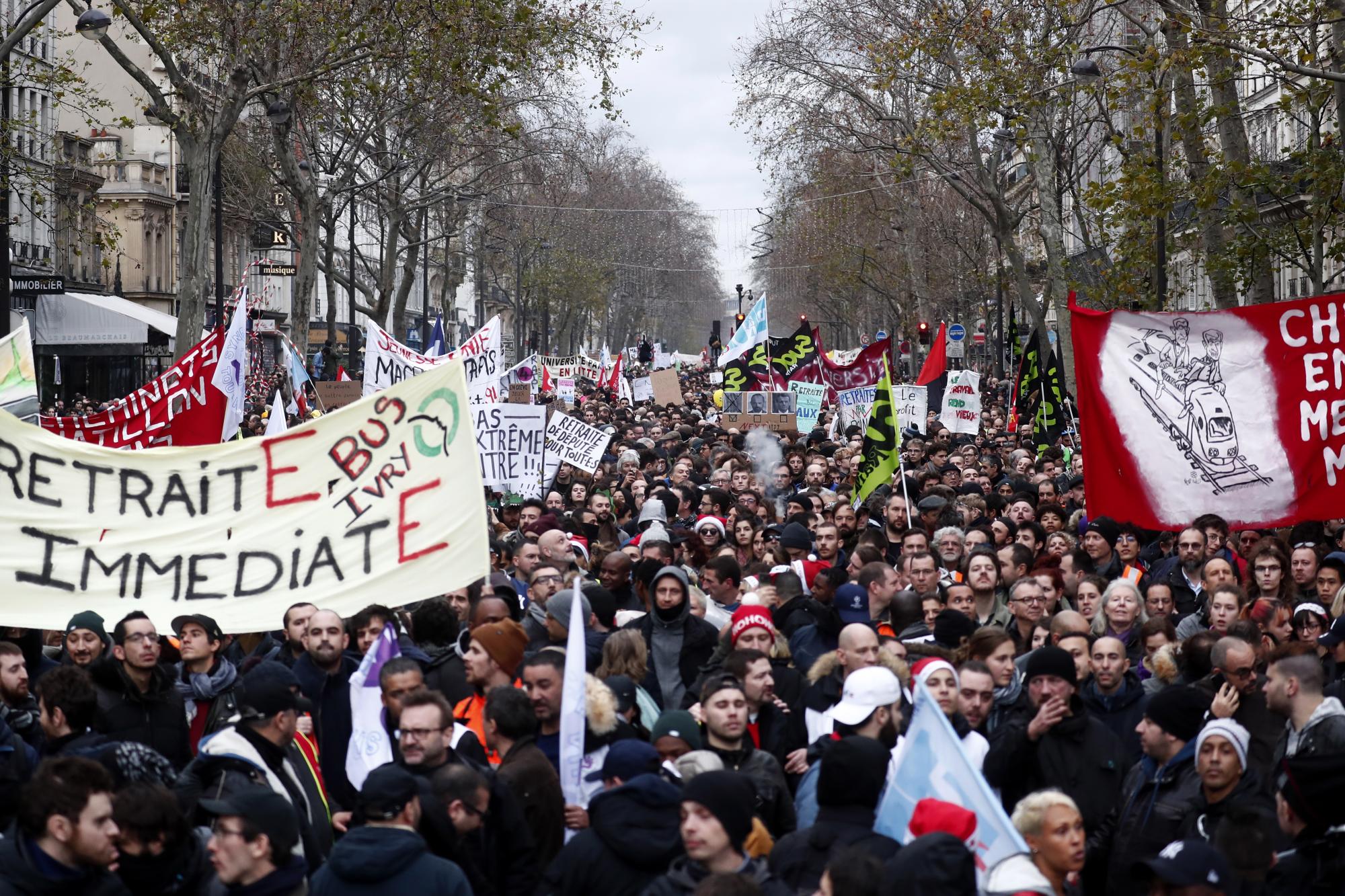Um discurso que contrasta com o de Philippe Martinez, secretário geral da outra grande central, a CGT, presente na cabeça da manifestação, que exige não só que o projeto existente seja retirado quanto que o “sistema atual evolua” para ser “mais justo e solidário”. Ou seja, a maior parte dos sindicatos está contra o fim dos sistemas especiais de pensões que vai nivelar direitos por baixo, a criação do sistema por pontos que vai tornar o valor das pensões e a idade dependente de uma decisão política do parlamento a cada ano, opondo-se também ao aumento previsto na idade da reforma.