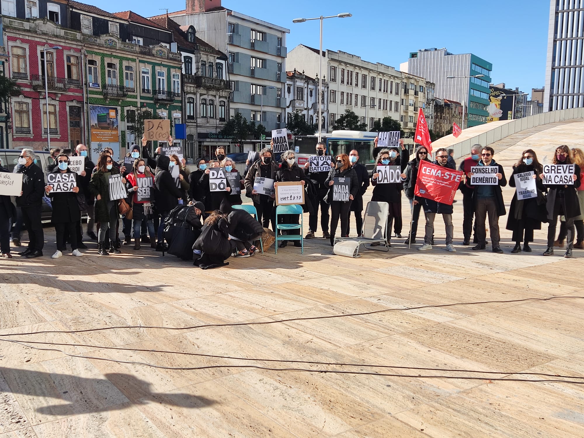 A greve marcada para esta sexta-feira teve "forte adesão de vários serviços da Casa da Música", nomeadamente os serviços técnicos e de restauração, sujeitos às piores práticas e abusos laborais que assolam a instituição há vários anos e que a crise pandémica trouxe à praça pública. No protesto desta sexta-feira, que juntou cerca de cinquenta pessoas junto à CdM, podia ver-se cartazes com palavras de ordem como "Salário igual = Trabalho igual", "Conselho Demérito", "Nada Muda" ou "Batota na Batuta".