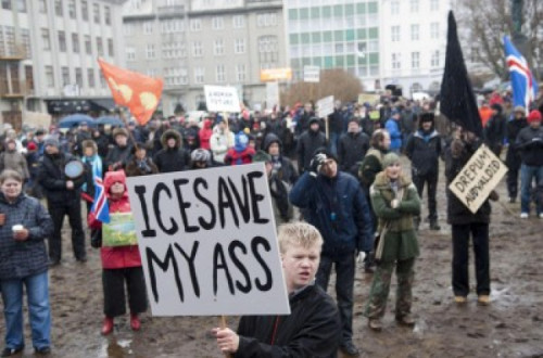 Ainda que sujeitos a inúmeras formas de pressão, entre as quais ameaças de bloqueio das exportações islandesas, paragem da ajuda financeira do FMI, bloqueio das negociações de adesão à União Europeia, e chantagem das agências de notação, 93% dos islandeses recusaram, em março de 2010, o acordo firmado entre o seu governo e os representantes britânicos e holandeses que previa o pagamento das indemnizações, no valor de 4 mil milhões de euros, a juros de 5,5 % a 15 anos.