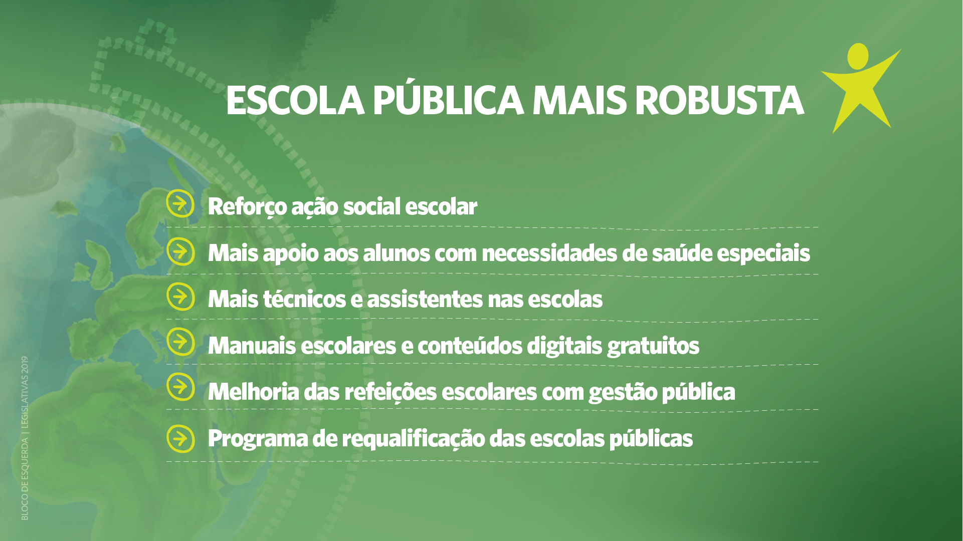- um programa de reabilitação dos edifícios escolares e a garantia de gestão pública das cantinas escolares;
