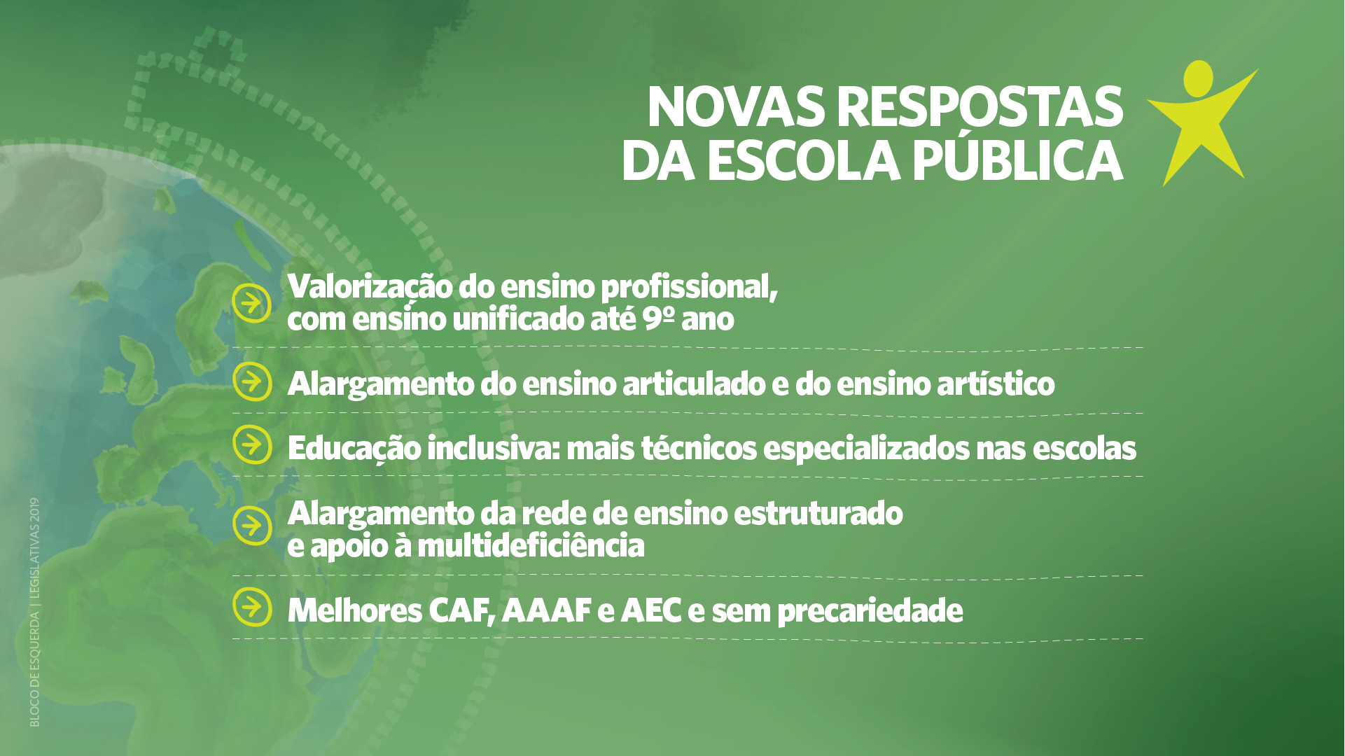 - a revisão do modelo de AEC, CAF e AAF “de modo a valorizar as atividades lúdicas, combatendo a sua excessiva disciplinarização e a precariedade dos vínculos dos profissionais";