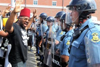 A imagem duma pessoa afroamericana desafiando a autoridade é algo raro. Ainda mais estranho é ver a polícia com capacetes postos, a usar armas semiautomáticas, carregando escudos e diante de veículos blindados. Tudo isto se estava a passar a poucos metros da pequena urbanização digna de se ver num postal típico do que é o coração dos Estados Unidos.