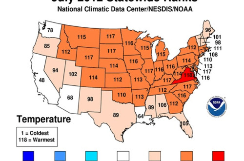 De acordo com o órgão, a média de temperatura dos 48 estados continentais foi de 25,3ºC, cerca de 1,8ºC acima da média do século XX desde que os registos começaram a ser feitos, em 1895. Ao todo, 44 estados registaram temperaturas acima da média para julho, sendo que a Virgínia bateu o recorde chegando a marcar 47,78ºC.
