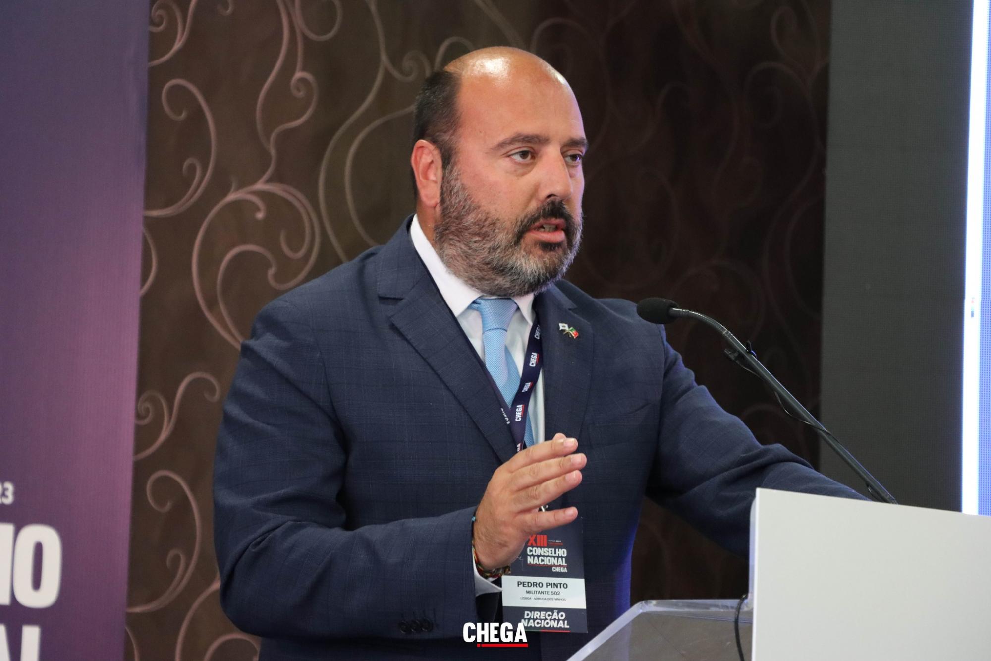 O semanário Expresso noticiou esta segunda-feira que o líder parlamentar do Chega foi visto a agredir um árbitro de futebol de 18 anos e a tentar agredir outro árbitro com a mesma idade. Tudo se terá passado num torneio de futebol infantil dos escalões sub-11 e sub-13 e Pedro Pinto integrava a equipa técnica do Futebol Clube do Crato, o clube anfitrião do torneio realizado entre 16 e 18 de junho no distrito de Portalegre.