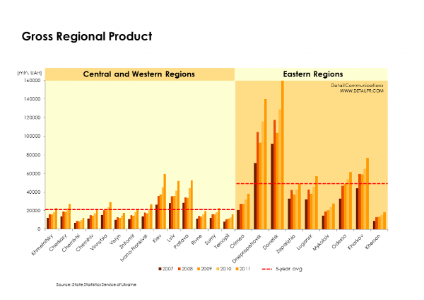 A zona este do país (junto à capital Kiev) é também a mais rica e industrializada. Aqui um mapa com os salários médios.