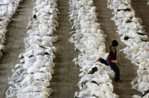 A BBC, com todo o prestígio que lhe é atribuído, também sem reservas, publicou no seu site esta foto das vítimas do massacre de Houla com a legenda de que teria sido facultada por "um activista" mas cuja autenticidade não poderia ser verificada.
