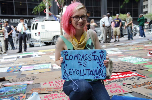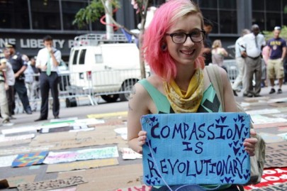 Acredito que estamos vivenciando o renascimento das qualidades que definiram de modo tão marcante as pessoas comuns da geração de meus pais (migrantes e grevistas da Crise de 1929): uma compaixão generosa e espontânea, uma solidariedade baseada em uma ética perigosamente igualitária: Pare e dê boleia a uma família. Jamais fure uma greve trabalhista, mesmo se sua família não puder pagar o aluguel. Compartilhe seu último cigarro com um estranho. Roube leite quando não houver para seus filhos e dê metade para as crianças do vizinho (isso foi o que minha própria mãe fez repetidas vezes em 1936). Ouça atentamente aos sagazes e serenos que perderam tudo, menos a dignidade. Cultive a generosidade do “nós”. O que quero dizer, suponho, é que me sinto extremamente impactado por aqueles que se juntaram para defender as ocupações apesar de diferenças significativas de idade, classe social e raça. E, da mesma maneira, adoro as crianças corajosas que estão prontas para encarar o próximo inverno e passar frio nas ruas, bem como seus irmãos e irmãs desabrigados.