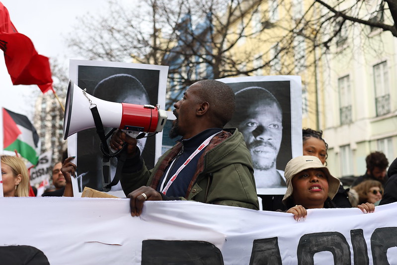 Nos muitos cartazes exibidos pelos manifestantes liam-se frases como “O 25 de Abril nasceu em África”, “O racismo mata, a negação também”, “O racismo ainda não acabou, mas as raças nunca existiram”, “Não há capitalismo sem racismo”, “Imigrantes ficam e fascistas vão-se embora”, ou eram lembrados Marielle, Danijoy Pontes, Bruno Candé ou Alcindo Monteiro, assassinado aos 27 anos, vítima de crime de ódio racial.