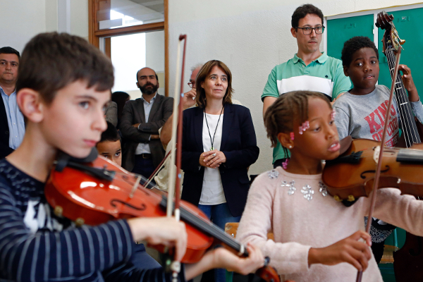 Na visita à Orquestra Geração na Escola Maria Keil, na Apelação, em Loures, Catarina Martins salientou que “é um projeto de música muito bom em comunidades onde muitas vezes há mais dificuldades educativas e que tem tido um grande resultado”.