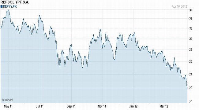 O afundamento de Repsol-YPF foi imparável e o governo do presidente Mariano Rajoy não deveria amparar o auxílio desta empresa, dado que a maioria dos capitais da Repsol não só não pertencem a empresas espanholas, como também têm a prática habitual de operar em paraísos fiscais, como assinala este artigo de Eduardo Muriel “Onde está a Repsol dos espanhóis?”, e este outro de Alberto Garzón. Daí que sejam desmedidas as represálias que está a tomar a Repsol, como indica este artigo do El País, quando a empresa esteve em queda contínua, tanto no nível de produção quanto no de valorização bolsista.