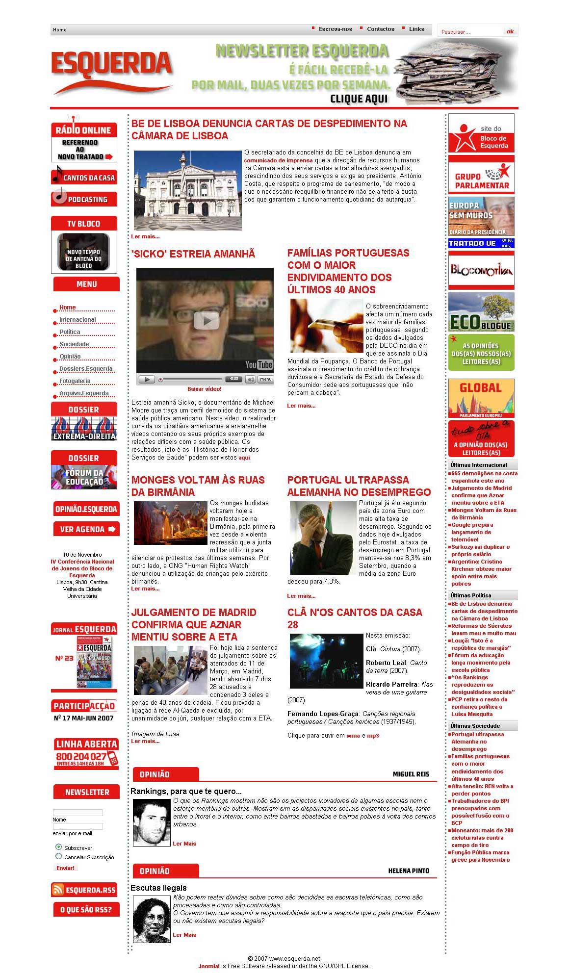 Perto de completar 4 anos de existência, o portal de notícias Esquerda.net realiza grandes mudanças. Para além do aspecto gráfico o leitor também vai notar uma significativa expansão dos recursos disponíveis, mudanças que decorrem da adopção de um novo Sistema de Gestão de Conteúdos (SGC), o Drupal. A "ferramenta" que estrutura todo o conteúdo do portal é desenvolvida na forma de software livre e está na vanguarda dos SGC.