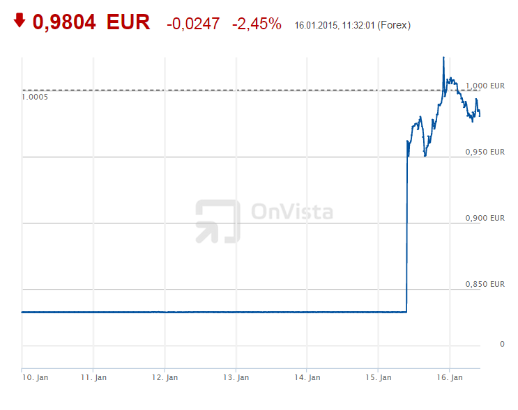 Só que, ontem de manhã, o BNS deu o dito pelo não dito, mudando de ideias e abandonando, de um momento para outro, a taxa de câmbio fixa. O resultado foi que o franco suíço chegou a valorizar-se cerca de 43% face ao euro, em apenas 20 minutos. Não se trata aqui do rublo ou de outra moeda de um país considerado “em desenvolvimento” mas de uma das principais praças financeiras do mundo desenvolvido, i.e., do “establishment”. Depois a taxa de câmbio corrigiu algo, mas penso que o franco suíço ainda se irá valorizar bastante mais.