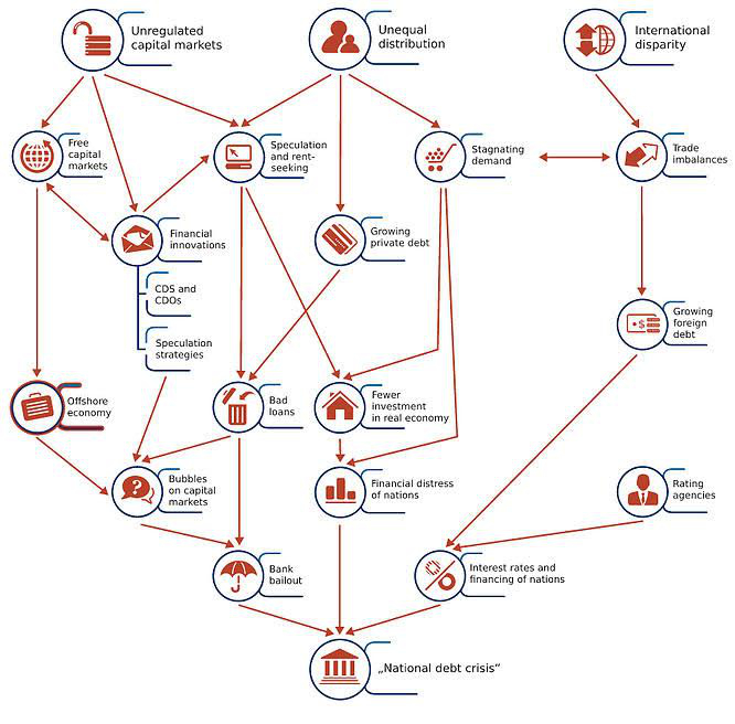 Mas de onde vem realmente a austeridade? Houve algum desastre natural que dizimou as colheitas? Talvez uma epidemia como a peste negra? Não! A dita “crise da dívida” vem da combinação de três factores: mercados de capitais desregulados + desigualdade na distribuição da riqueza + disparidades internacionais. Difícil de compreender? Veja a infografia ou leia mais aqui.