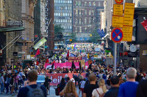 Manifestação em Helsínquia - 15 minutos de paragem - Foto de Florencia Quesada[/caption]