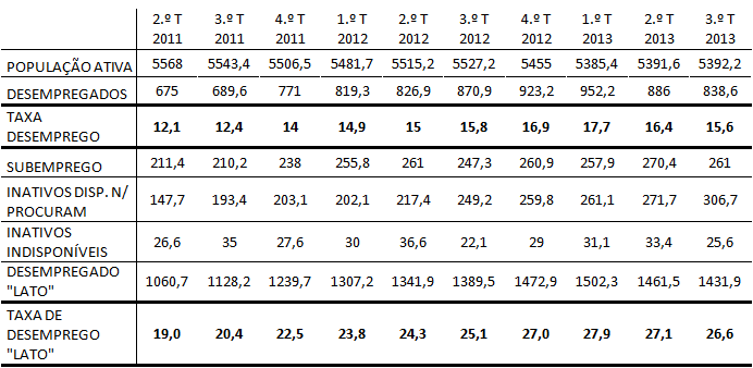 Mariana Mortágua expôs aqui, em Fevereiro, com imenso rigor e detalhe o problema central dos dados sobre o desemprego: o seu cálculo é absolutamente superficial. A forma de cálculo das taxas de desemprego nas estatísticas oficiais escondem muitas situações reais de desemprego que não são contabilizadas. Mas Mariana Mortágua vai mais longe incluindo no cálculo os casos excluídos nos dados oficiais. Conclusão: no 3º trimestre de 2013 a taxa real de desemprego não era 15,6 % mas antes 26,6 %.