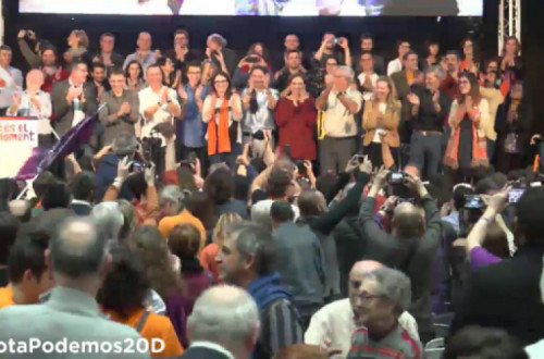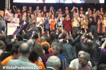 O Podemos encerrou a campanha eleitoral, nesta sexta-feira 18 de dezembro, com um comício em La Fonteta de Valencia, enchendo completamente o pavilhão polidesportivo.