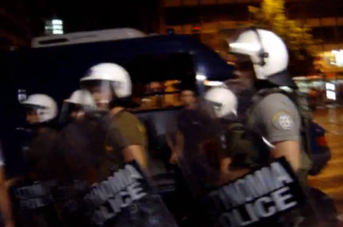 "Como ladrões que temem o clamor do povo e a vergonha pública, a polícia entrou na praça às quatro da madrugada", diz o comunicado dos acampados da Praça Syntagma, com palavras desafiadoras para o governo.