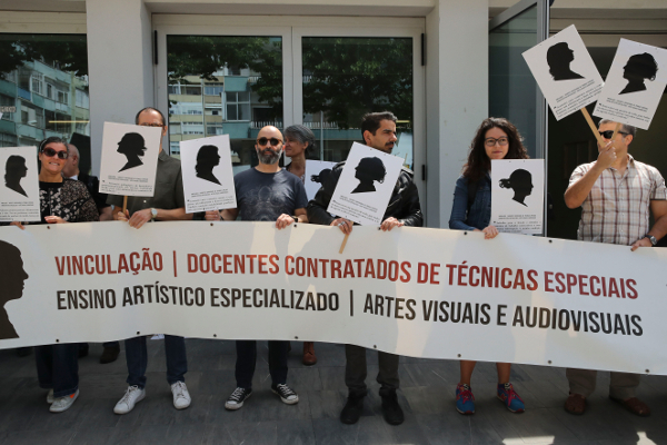 Professores e professoras de Técnicas Especiais das escolas artísticas António Arroio, de Lisboa, e Soares dos Reis, do Porto, concentraram-se nesta quarta-feira nas duas escolas, protestando contra a precariedade e exigindo o direito à vinculação extraordinária.