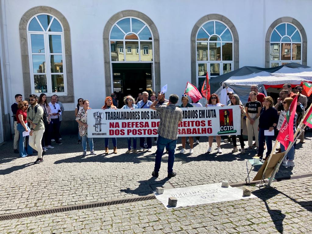 Concentração dos trabalhadores dos bares da CP em frente à estação de Campanhã, no Porto. Foto Esquerda.net