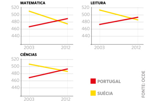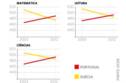 O relatório PISA 2012, divulgado esta terça-feira pela OCDE, conclui que a presença de escolas privadas não é sinónimo de melhor desempenho dos alunos ou de mais qualidade educativa. O país que Nuno Crato aponta como farol da sua política do cheque-ensino - a Suécia - foi dos que mais caíram nos rankings da OCDE tanto em Matemática como em Leitura e Ciência, passando para trás de Portugal. Comparando com o relatório de 2009, verifica-se que Portugal ultrapassou a Suécia nas três áreas deste ranking e o "país-modelo" de Nuno Crato foi mesmo o que mais caiu entre os 65 países sujeitos a esta avaliação.