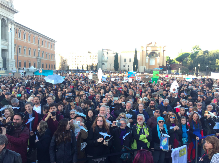 Contra la xenofobia y la extrema derecha, manifestación de las #sardinas en Roma. Lleno absoluto. #Antifascismo #Sardine pic.twitter.com/OkSFmfrkLq