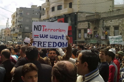 Na sua primeira declaração conjunta, citada pelo Guardian, os auto-denominados "comités locais de coordenação", que representam as províncias de toda a Síria, afirmaram que "os slogans de liberdade e dignidade não podem ser alcançados senão por uma mudança democrática pacífica".