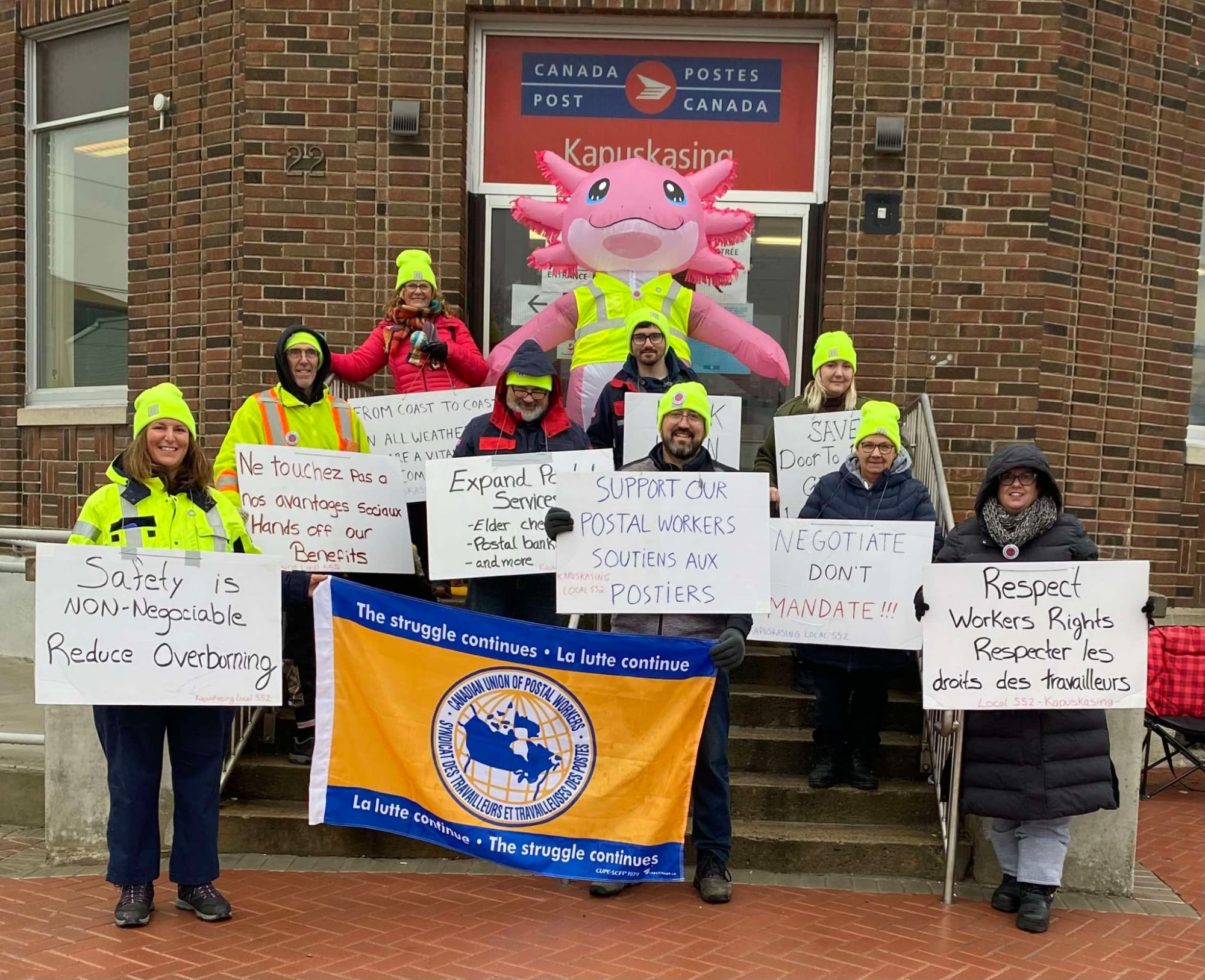 “Os trabalhadores dos Correios fazem entregas em todas as moradas do país, por mais remotas que sejam. Vamos a sítios que o setor privado não vai, porque o lucro e não o serviço é o seu objetivo final. Enquanto a concorrência coloca o lucro das empresas acima de tudo, nós orgulhamo-nos de oferecer serviços a toda a gente”, aponta o Sindicato dos Trabalhadores dos Correios do Canadá (CUPW/STTP). A paralisação está a afetar sobretudo as zonas rurais, pois nas grandes cidades os consumidores podem escolher ter as suas entregas feitas por empresas de entregas privadas. Esta segunda-feira o CUPW/STTP acusou a administração de estar a telefonar a alguns dos seus filiados para os colocar em lay-off, no que qualifica como uma “tática para amedrontar” os grevistas, que beneficiam do fundo de greve para manter o sucesso da paralisação prolongada. A última greve dos trabalhadores postais ocorreu em 2018 e durou cinco semanas, tendo terminado por ordem do Governo para que os grevistas voltassem ao trabalho. Nos anos seguintes trabalharam sem contrato coletivo acordado o que só aconteceu em setembro de 2021.