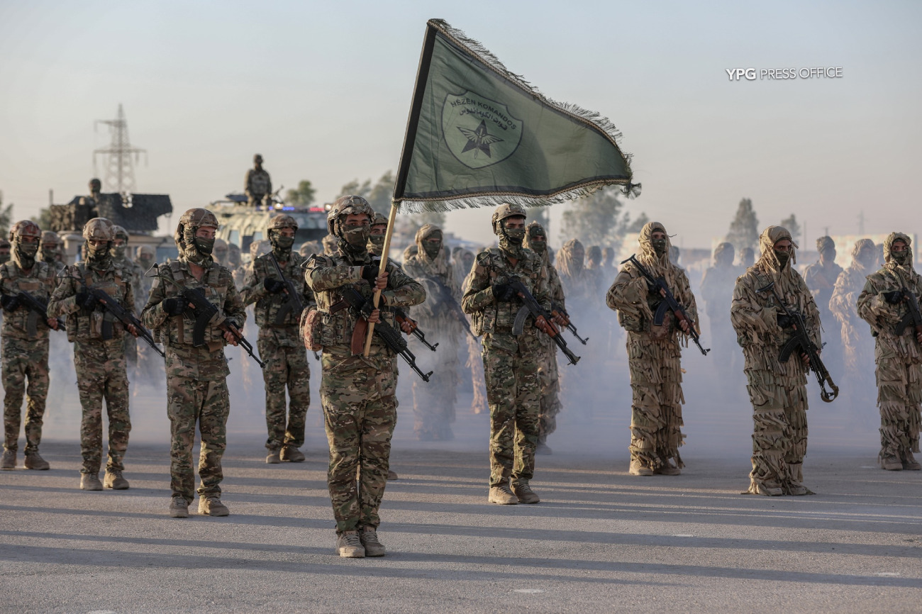 Em contrapartida, as forças do novo regime sírio não são significativamente maiores do que as forças curdas e carecem de coesão. Constituem uma coligação híbrida composta por Hayat Tahrir al-Sham, outros grupos jihadistas (alguns deles não sírios) e forças diretamente leais a Ancara — unidades pertencentes ao chamado Exército Nacional Sírio.
