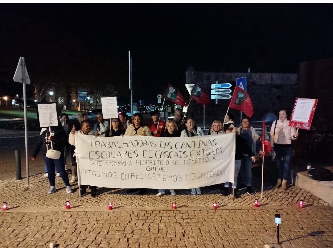 Esta segunda-feira, os trabalhadores das cantinas escolares de Cascais que estão concessionadas pela Câmara à Gertal concentraram-se em vigília em frente ao local onde decorria a Assembleia Municipal.