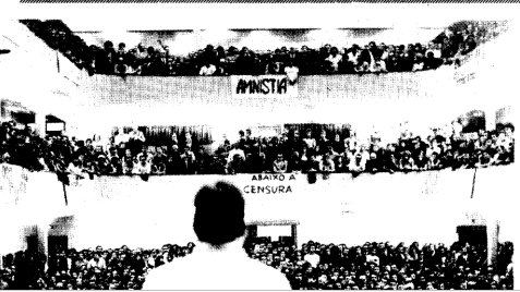 Sessão da oposição na Incrível Almadense, em 11 de outubro de 1973, com a reivindicação da amnistia para os presos políticos e o fim da censura.