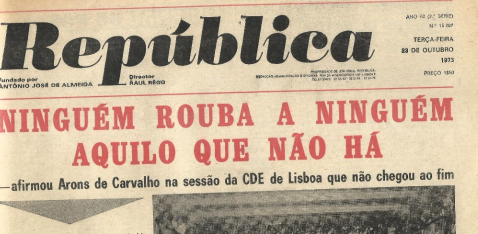 1ª página do jornal República em 23.10.1973