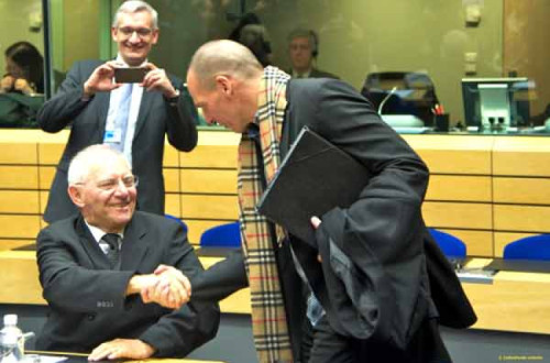 Para Varoufakis, o “Grexit” tornou-se “ora o desfecho preferido ou a arma escolhida contra o nosso governo” pela larga maioria do Eurogrupo, “sob a tutela de Schäuble”. “Pela minha experiência nos cinco meses de negociação, a minha convicção é que o ministro das Finanças alemão quer ver a Grécia ser expulsa da moeda única para atemorizar os franceses e fazê-los aceitar o seu modelo de uma zona euro disciplinadora”, concluindo que a dívida insustentável da Grécia serve o interesse do ministro alemão.
