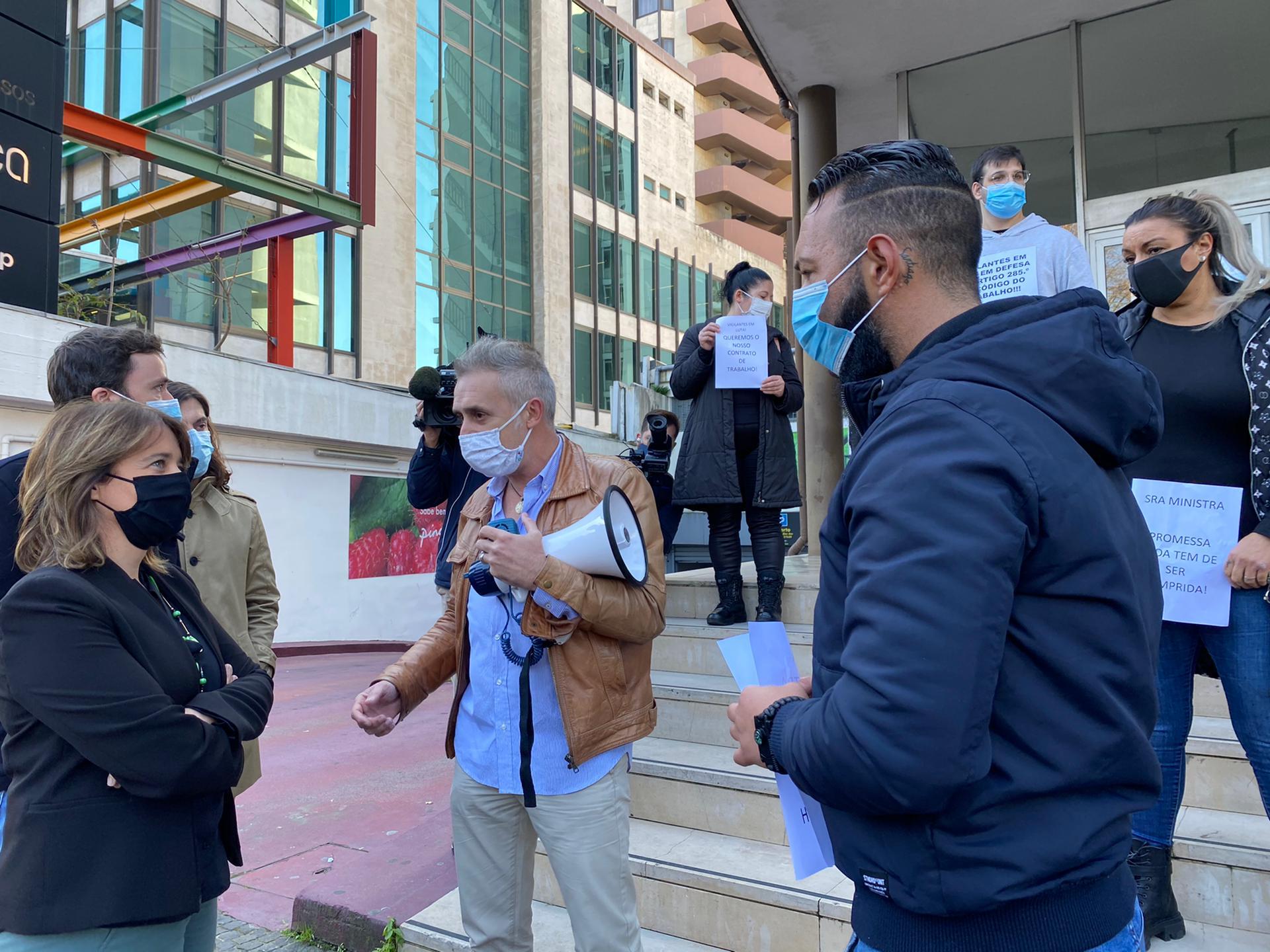 Durante o protesto, Catarina Martins afirmou que “os vigilantes dos serviços públicos são pessoas a quem devemos muito”. “Em tempo de pandemia estão na linha da frente. Tantas vezes respondem aos cidadãos quem se dirigem à Segurança Social, à ACT...”, apontou.
