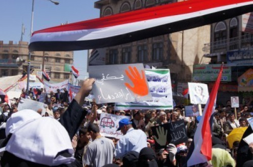 Estados Unidos e Arábia Saudita, perante os objectivos de ataques do ramo iemenita da rede terrorista Al Qaeda, desejam ver uma resolução da situação política do Iêmen, pois temem que o contínuo caos dê mais terreno a essa organização. No dia 17, os iemenitas completaram cem dias de protestos contra o governo. Na manhã desse dia, no Porto de Aden, pessoas armadas e em roupas civis dispararam para cima diante do acampamento de manifestantes.